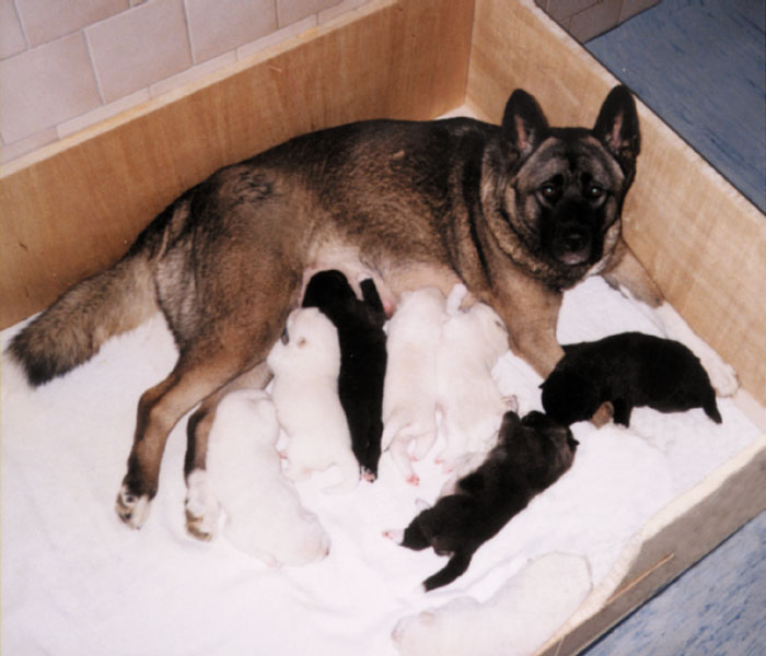 roku 1996 zapísaných 10 bielych šteniec. Po jednom párení a